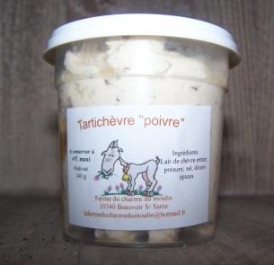 Fromage de chèvre battu à tartiner, au poivre. Délicieux à l'apéritif dans une tomate cerise ou tartiné sur une tranche de jambon ou tout simplement sur un toast. Peut être la base d'une sauce à la crème pour napper une viande grillée.. pot de 140 g.